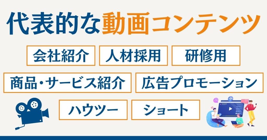 動画コンテンツはその目的やターゲット、プラットフォームによってさまざまな種類が存在します。ここでは代表的な動画コンテンツを紹介しましょう。